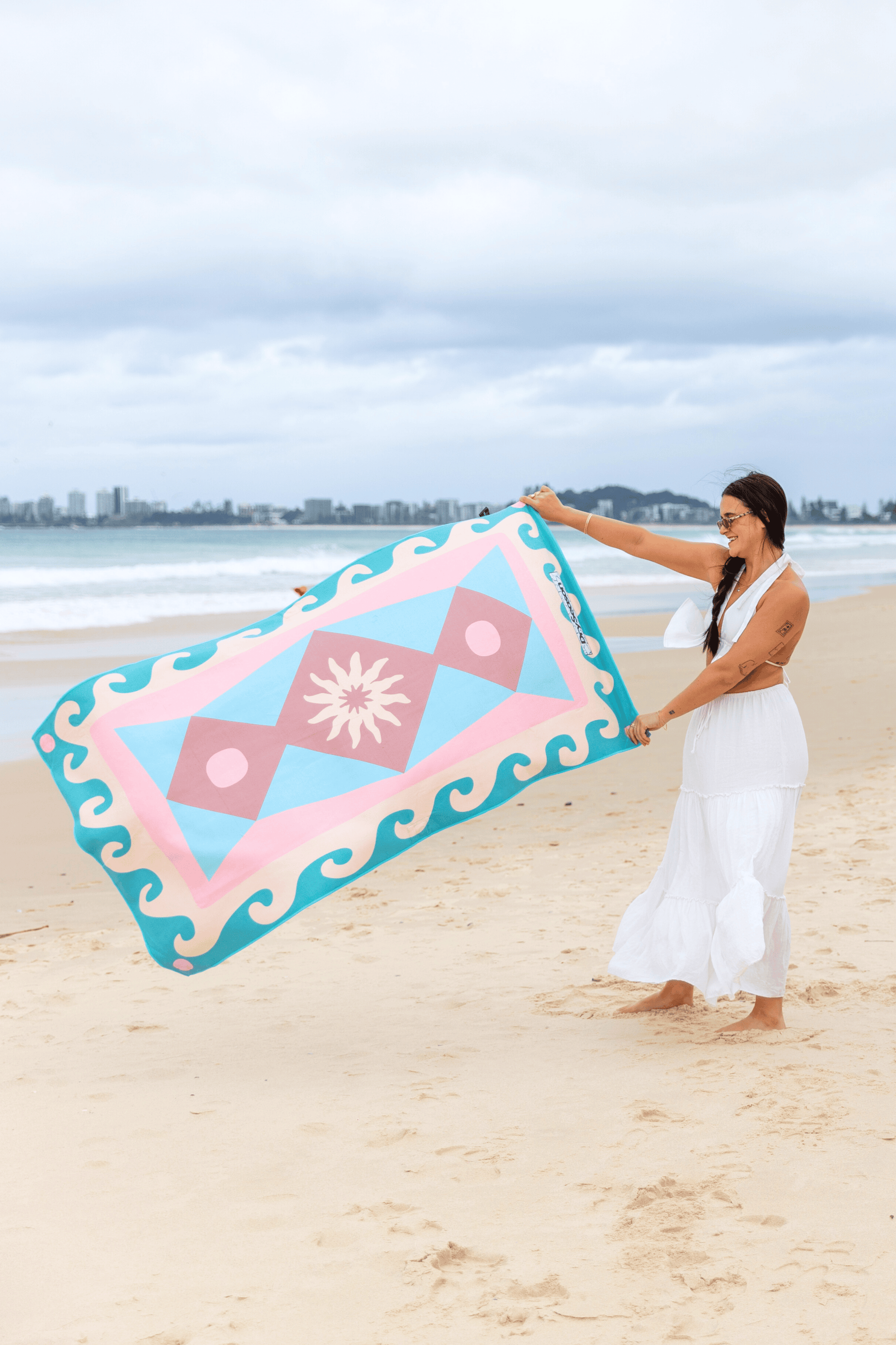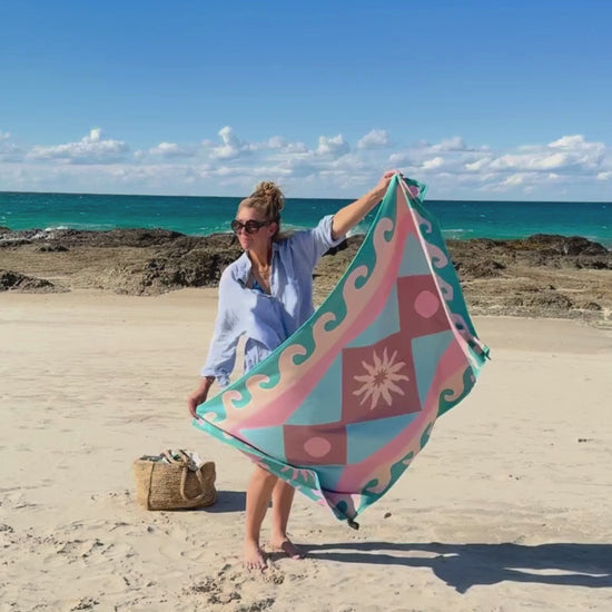 I brought this towel as a gift for my daughter. She loved the colours and says the print is her vibe. Love that its compact, has its own bag, and can use it in the car to keep sand and salt off the seats. Win win.